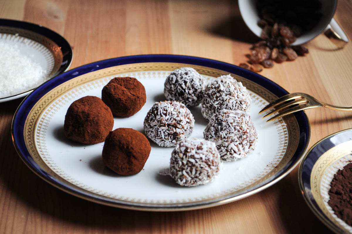 Für diese vegane Energiebombe aus Trockenfrüchten und Nüssen brauchst du nicht viel und kannst deiner Kreativität bei der Wahl der Zutaten freien Lauf lassen. Wir stellen zwei Varianten vor, bei denen Schokoladen-Fans auf ihre Kosten kommen! Vermenge einfach alle Zutaten in einem Mixer und forme aus der Masse kleine Kugeln. Je nach Belieben kannst du die Bällchen in Kokosraspeln oder Kakao- bzw. Carobpulver wälzen. Lasse sie eine Stunde im Kühlschrank für die perfekte Konsistenz.